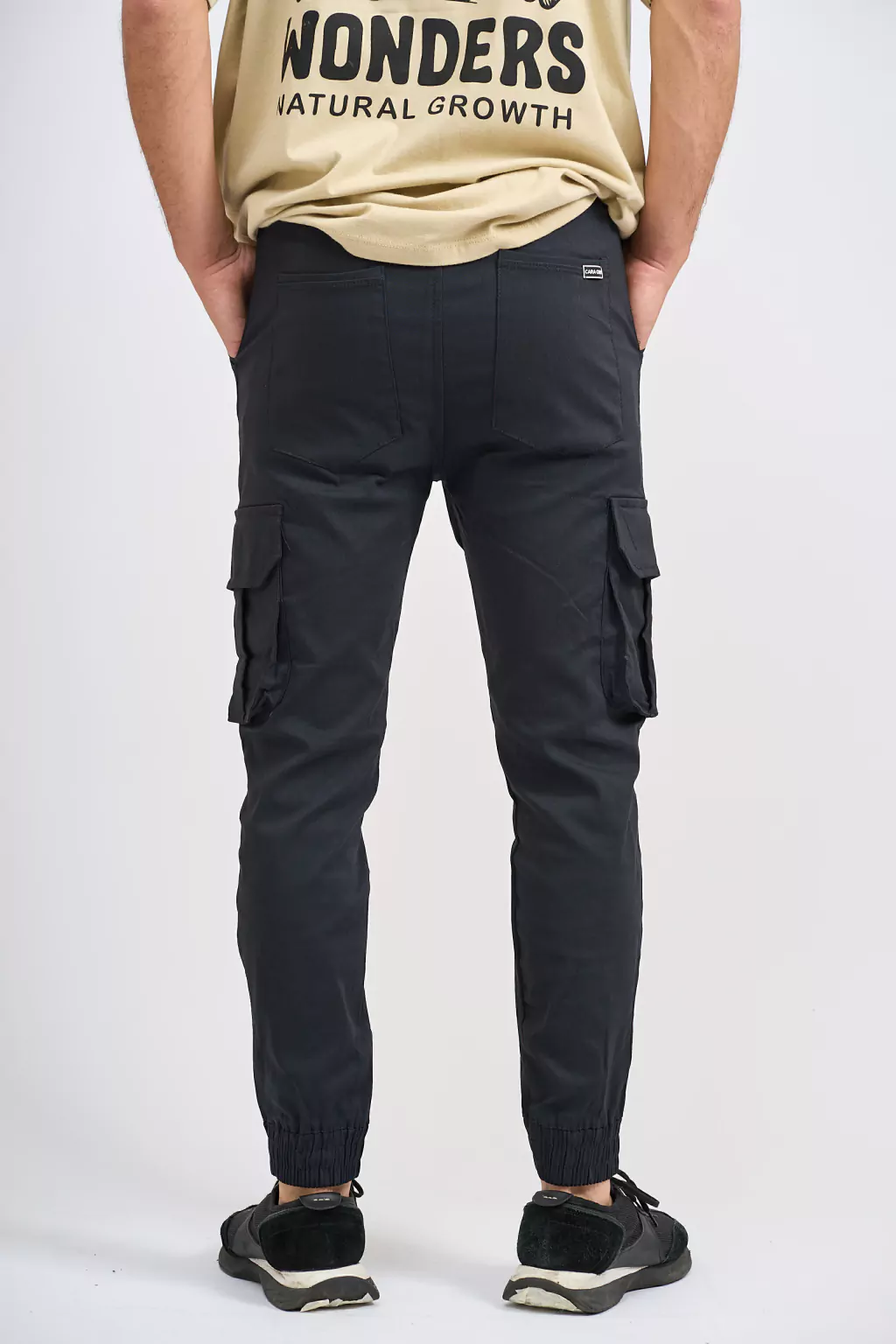 Pantalón relax fit confeccionado en gabardina elastizada con puño. La tela y confección garantizan comodidad al vestirlo. Cuenta con bolsillos laterales cargo, elástico en la cintura y cordones a tono con punta metálica. Etiqueta de silicona institucional en bolsillo lateral y trasero. Ideal para complementar un look para ir a la oficina.